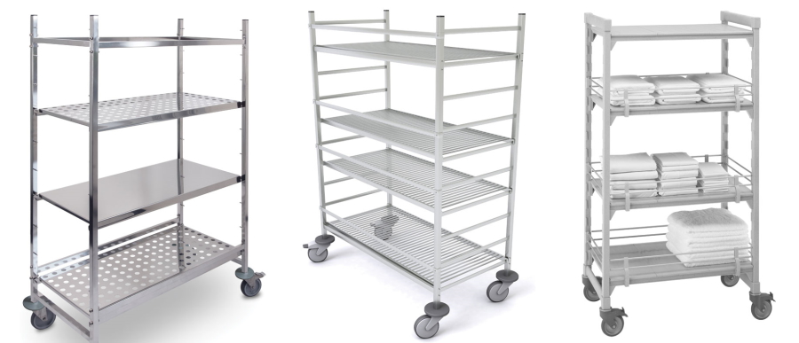 Die mobile Regalsysteme gibt es in den Varianten Edelstahl, Aluminium und TIGER RACK.