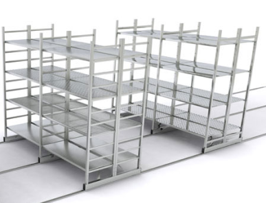 Das Schieberegalsystem gibt es in den Varianten Edelstahl und Aluminium. Durch eine solche Anlage erhöht sich